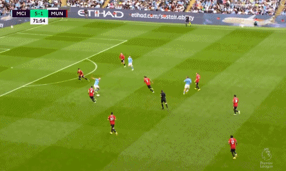 下半时,双方易边再战,曼联再度换人,卢克肖登场换下马拉西亚。第56分钟,埃里克森中场左侧长传转移,安东尼右路得球内切来到禁区弧右侧,面对对方3名防守球员左脚兜出了一记世界波,曼联扳回一球,1-4!第59分钟,曼联连换两人,拉什福德、麦克托米奈分别被马夏尔和卡塞米罗换下。第63分钟,贝尔纳多-席尔瓦直塞禁区左侧,哈兰德插上左脚抽射打在了边网上。