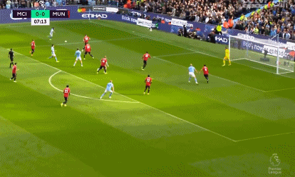 第21分钟,哈兰德禁区中路接队友回传后将球顺给了福登,后者点球点附近左脚爆射高出横梁。第23分钟,拉什福德传球失误被断,马拉西亚在补防时拽倒福登吃到一张黄牌。第32分钟,格拉利什禁区左侧背身做球,德布劳内外围左侧持球推进后忽然右脚重炮轰门被德赫亚化解。第34分钟,曼城获得左侧角球机会,德布劳内主罚将球开到禁区中路,哈兰德高高跃起头球攻门,马拉西亚门线上将球解围,不过皮球已整体越过门线,当值主裁鸣哨示意进球有效,曼城扩大比分,2-0!