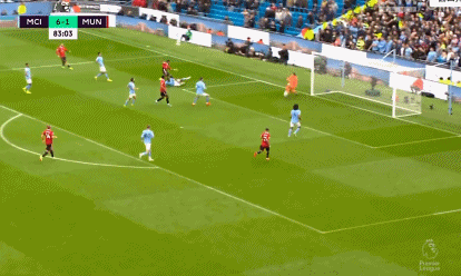 第64分钟,德布劳内斜塞禁区左侧,戈麦斯得球横扫中路,哈兰德左脚迎球怒射破门上演帽子戏法,曼城进一步扩大比分,5-1!值得一提的是,这也是哈兰德本赛季英超第14球。算上在本场比赛连进3球,哈兰德成为英超历史上第一个在主场连续3场上演帽子戏法的球员。第73分钟,格拉利什分球,哈兰德前场中路拿球转身后送出一脚直塞,福登禁区左侧左脚抽射破门完成帽子戏法,曼城再度改写比分,6-1!