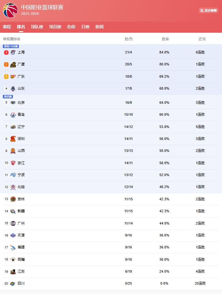 本赛季CBA联赛竞争格外激烈,青岛队、深圳队、山西队和浙江队等中游球队积分差距微弱,积分榜排名随时可能发生变动。而排名垫底的四川队则仍深陷泥潭,历经25场比赛依旧难求一胜,保级形势严峻。