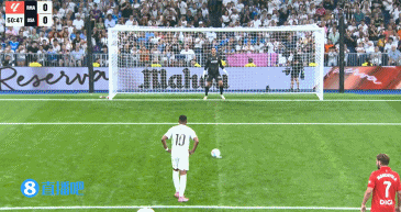 第49分钟,姆巴佩禁区右路强突下底急停扣球被克鲁兹追防铲倒,主裁果断判罚点球,姆巴佩亲自主罚命中,皇马1-0领先↓